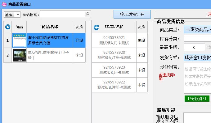 - 按商品的规格属性(即SKU)不同发送不同商品